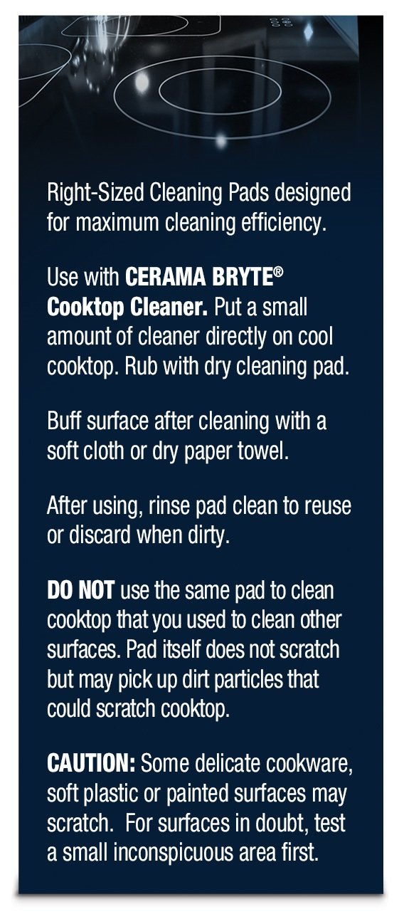 Keep your cooktop and stove top sparkling clean with these high-quality, non-abrasive cleaning pads. Designed to work seamlessly with Cerama Bryte Cooktop Cleaner, they are perfect for removing tough stains, grease, and grime without damaging your delicate glass or ceramic surfaces. These pads are gentle yet effective, ensuring a streak-free shine every time.