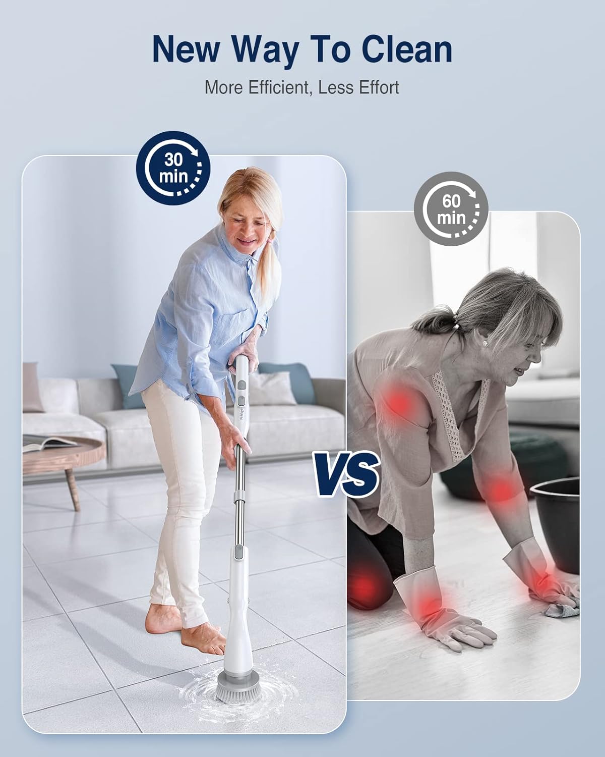Featuring a high-speed motor that spins up to 400 RPM, the LA1 Pro ensures deep cleaning without excessive effort. The 4 replaceable brush heads allow you to tackle different surfaces with easeâshower walls, countertops, or vehicle surfacesâwhile the adjustable extension handle gives you the flexibility to clean tight spaces or high areas without bending down. Built with durable, long-lasting components, this scrubber is your reliable partner for everyday cleaning and occasional deep scrubbing. Plus, enjoy 24-hour customer support for peace of mind and a seamless experience.
